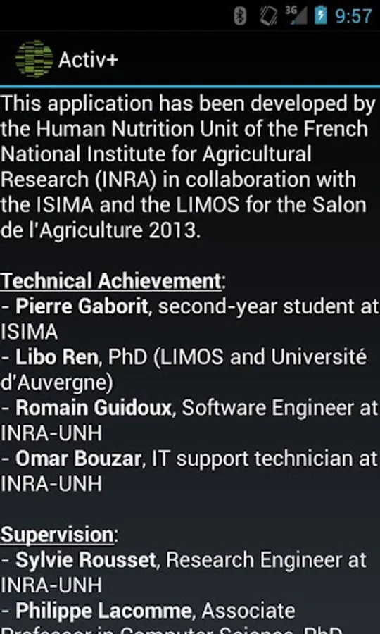 Activ+ is an event application for a play animation about physical activity proposed by the Human Nutrition Unit of the French National Institute for Agricultural Research during the Salon de l'Agriculture 2013, in Paris.