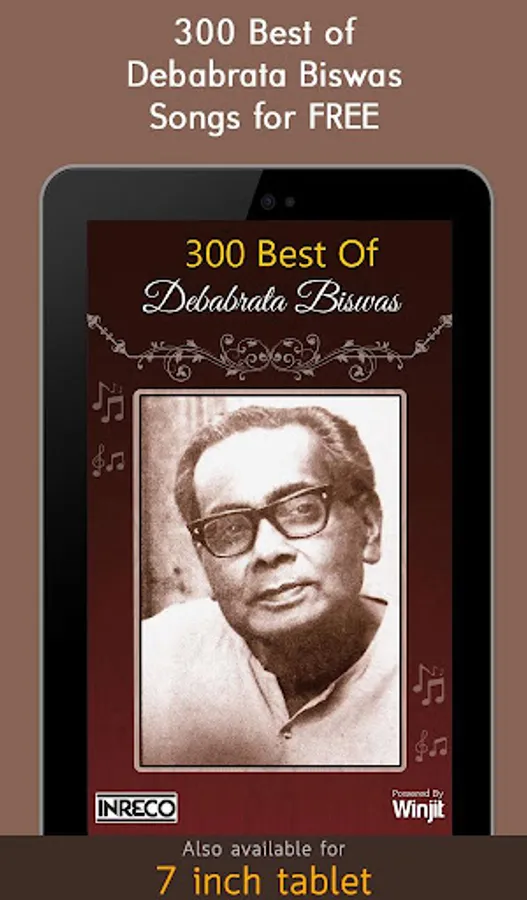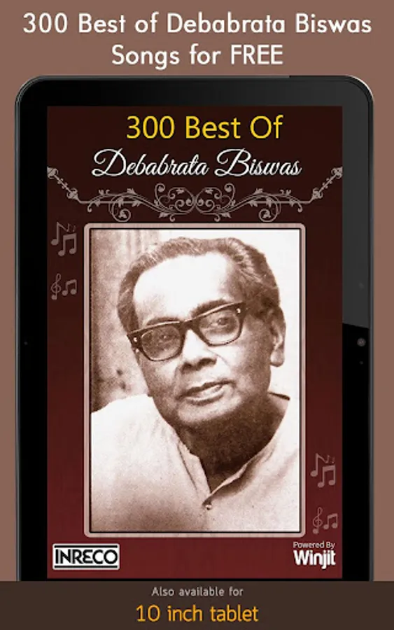 Debabrata Biswas demonstrates soulful full-throated expression of melody with a strict adherence to the rules and norms of tradition, written and unwritten, Biswas is the only singer who sang Rabindra Sangeet in Sanskrit, English, German, French, and Russian. He got trained at Ramakrishna Mission Institute of Culture, Kolkata for learning rudiments of foreign languages . Some of his numbers which go deep into the heart of Bengalis are Akash bhora surjo tara, Je ratey mor duarguli, Pinakete lagey tonkar, Tomar kache ebor magi, Chokher jole laglo joar, Swapne amar mone holo etc.Inreco and Winjit Technologies bring you the app with Great collection of his melody. Moreover, you can enjoy this divine collection on 2G/3G and Wifi as well. So, download this one app and get to know the king of melody.