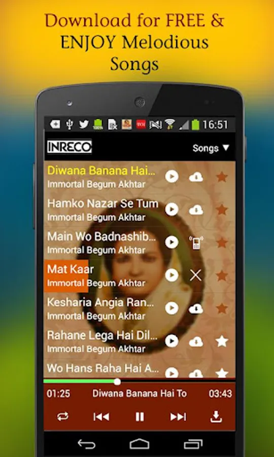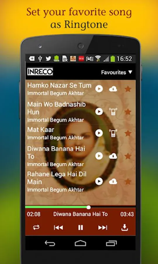 The Malika-e-Ghazal is here to steal your hearts with her sensitive and melodious voice. Get 50 rare Begum Akhtar Hits, a well known Indian Ghazal singer.