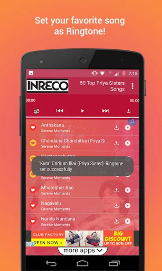 The app lets you download, listen and also lets you mark your favorite songs. The app is a storehouse of the best Carnatic vocal and Sanskrit songs by Priya Sisters.