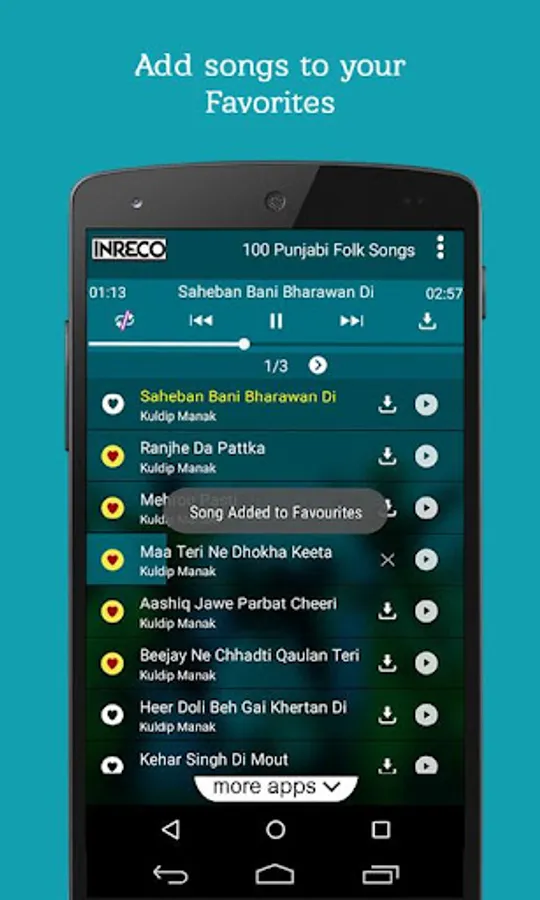 Punjab known for its energetic approach towards life, gets most of its energy from Music. There is a great repertoire of music from the time of birth through the different stages of joy and sorrow till death.It may be Folk, devotional, occasional,festive there are various forms of Punjabi Music. Winjit Technologies along with INRECO presents to you a vigorous collection of 100 Punjabi Folk Songs.Moreover, this app is compatible with 2G/3G and WiFi as well. So why wait? download this app now and dance to the beat!