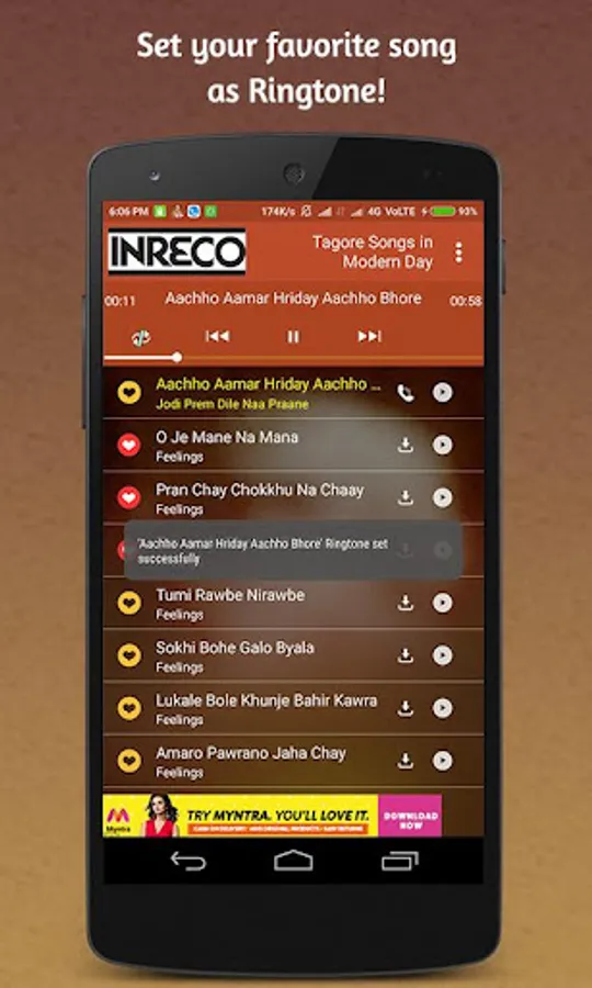 Rabindranath Tagore, a Bengali polymath and a prolific composer, who reshaped Bengali literature and music. Experience his compositions which are rhythmic, optimistic, and lyrical in nature. Inreco and Winjit Technologies present you the app with the fabulous songs composed by Rabindranath Tagore in Bengali. You can enjoy this unique and extensive collection on 2G/3G and Wifi as well. So, download this app and discover the collection of such fabulous songs of him which merge fluidly into literature.