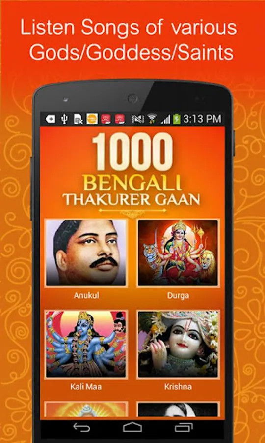 INRECO Music along with Winjit Technologies bring you an app of 1000 Bengali devotional songs. The App is a one stop shop of devotional music for Bengali listeners. The App features bhakti songs of Gods & saints from the holy land of Bengal. These include songs of: