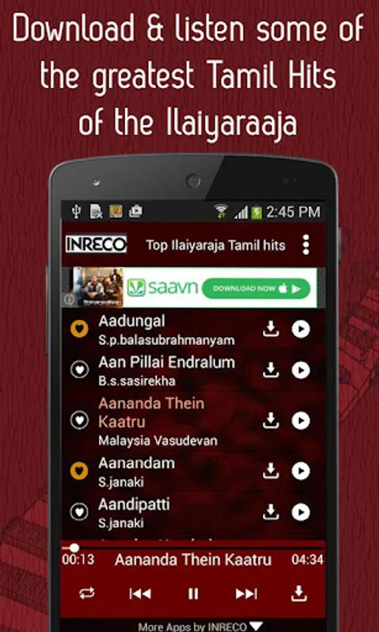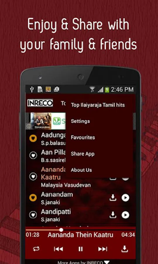 Inreco in partnership with Winjit is proud to bring you some of the greatest hits of the legendry music composer. Download the App and listen to some of the best Tamil music. We have taken special care to give the fans a great app.