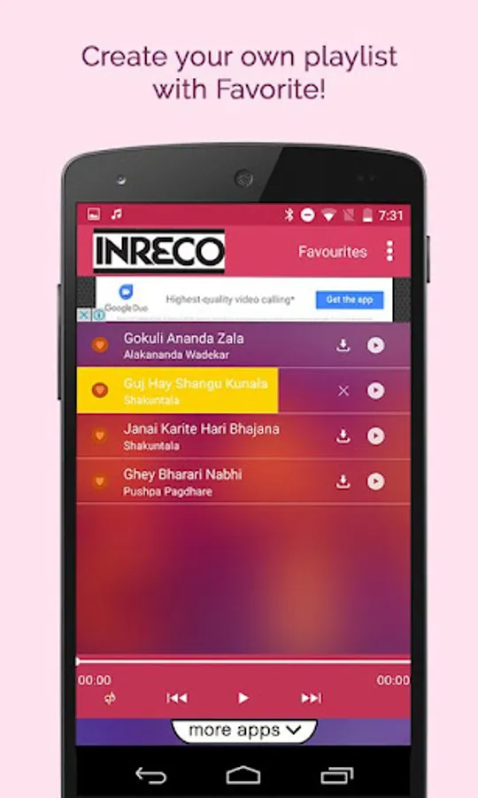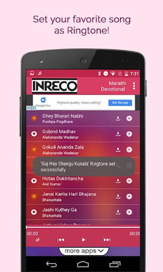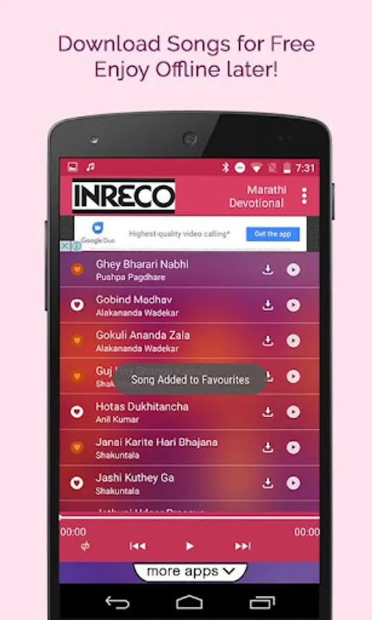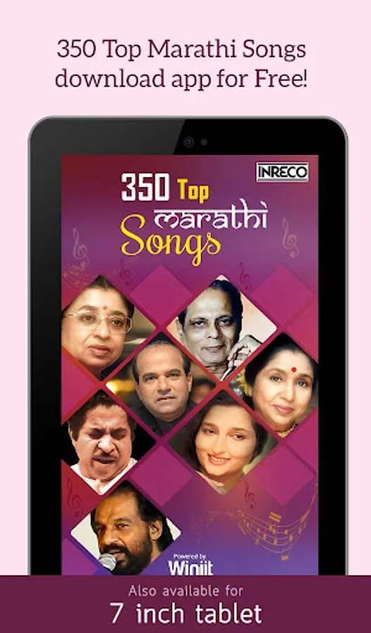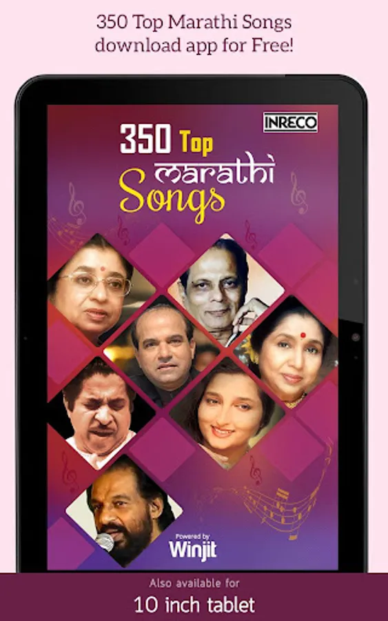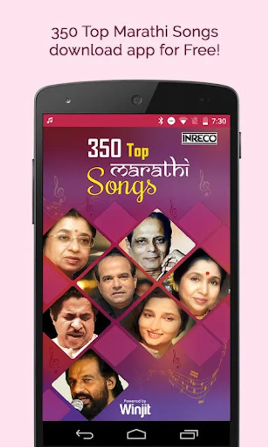 INRECO & Winjit Technologies brings to great collection of Top Marathi Songs. This app is even compatible with 2G/3G and Wifi aswell. So download the app now.