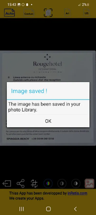 Then a screen will offer you several presentation options and you can save the scanned document in your photo library and/or send it to other people.