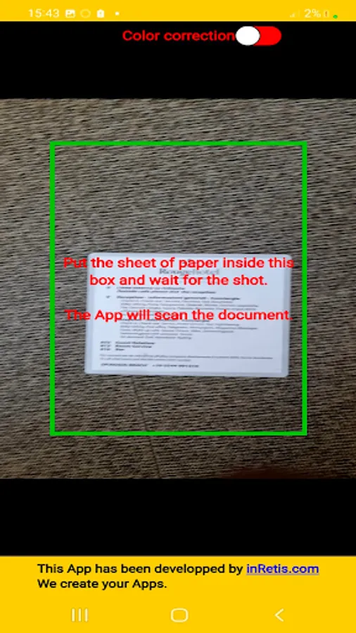 Place your document on a dark background and point your smartphone camera at the document. DocScan will then automatically take a photo and extract the document automatically and in real time.