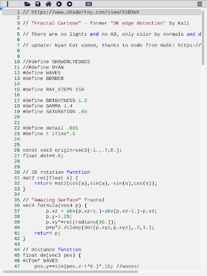 Experiment with the included examples from www.shadertoy.com.