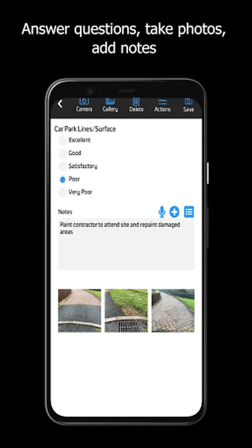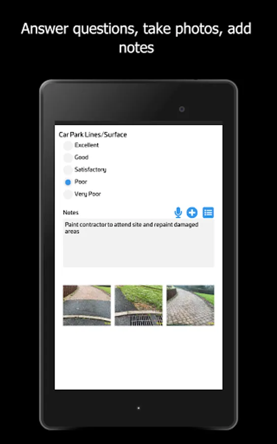 Designed to improve productivity and efficiency. Complete surveys, audits and site inspections straight from your smart-phone or tablet. Our easy to use digital forms let you attach photos, assign actions, and sign via the device, instantly generating a detailed PDF report.