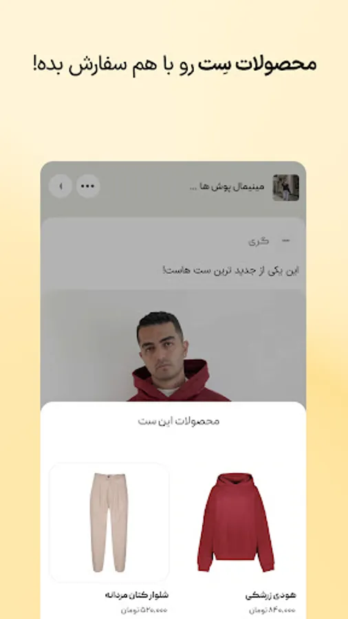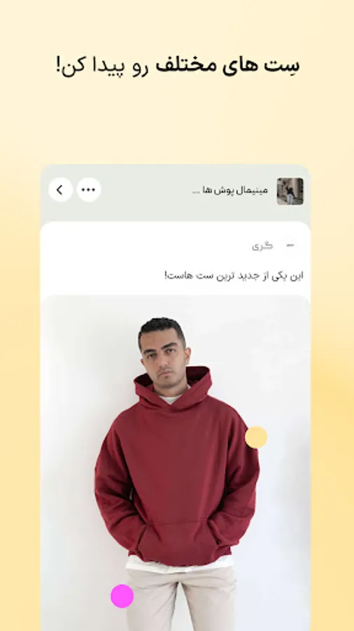 - میتونی از ست ها و استایل های آماده پوشاک ایده بگیری و خرید کنی!