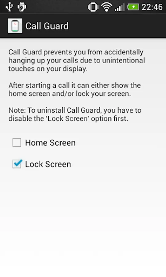 Call Guard prevents you from accidentally hanging up your calls due to unintentional touches on your display.