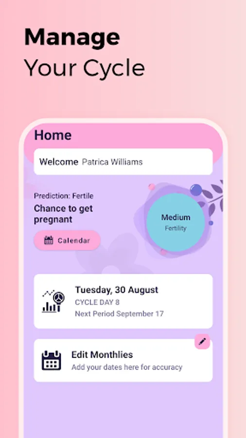 It's designed to help you get pregnant as soon as naturally possible for you by identifying your most fertile days & receiving tailored insights. With our pregnancy mode, you'll calculate your due date and set a countdown to learn what the newborn needs for his/her essential care.