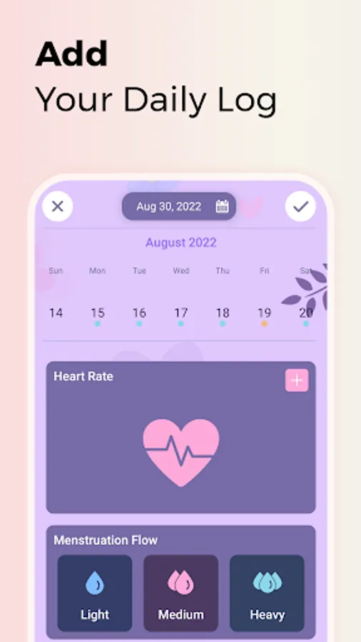 Schedule reminders of your period approaching, start and end dates, with your ovulation day and personalize your dates to get notifications about weight, sleep, water intake, step goal & birth control.