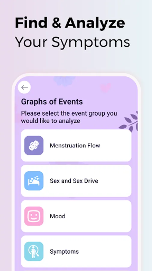 Several activities to get the most precise AI based overview of your body's patterns. Keep a diary of your weight, height, water intake, physical activities, sex drive, mood swings & PMS symptoms to monitor changes and receive timely insights.