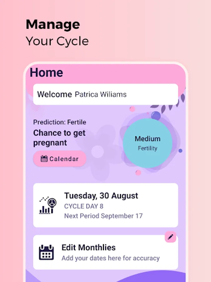 This period tracker helps you know when to expect periods by calculating the most fertile days of your cycle. You will be able to predict your ovulation days with this period tracking app.