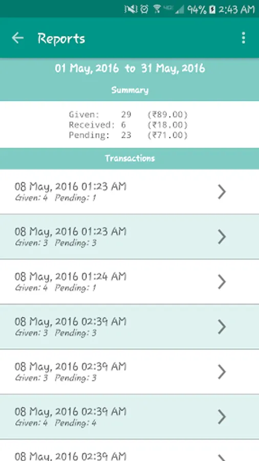 - See a summary or a detailed (transaction-wise) report