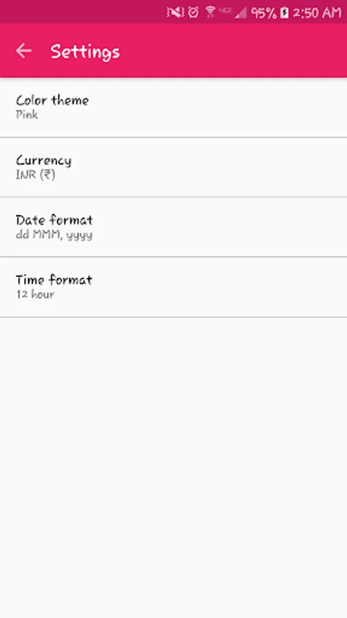 - Change the color theme, date/time format, reminder options and currency