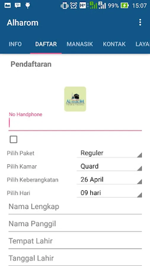 Aplikasi untuk memudahkan para calon jamaah travel umroh Alharom/Alharam mendapatkan informasi paket-paket travel Umroh, dan pendaftaran tabungan.