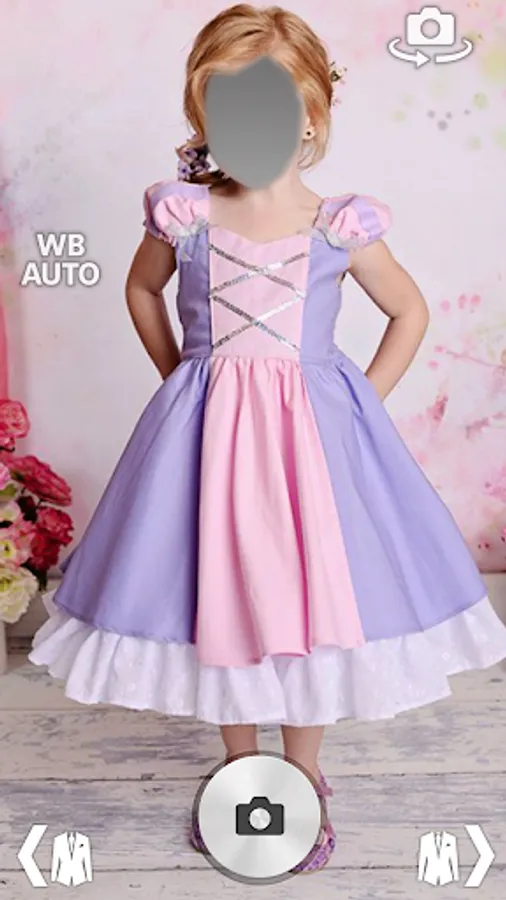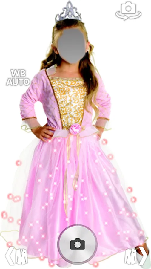 Try new little princess dress suit easily in 1 step with #1st princess games camera photo frames app for android.