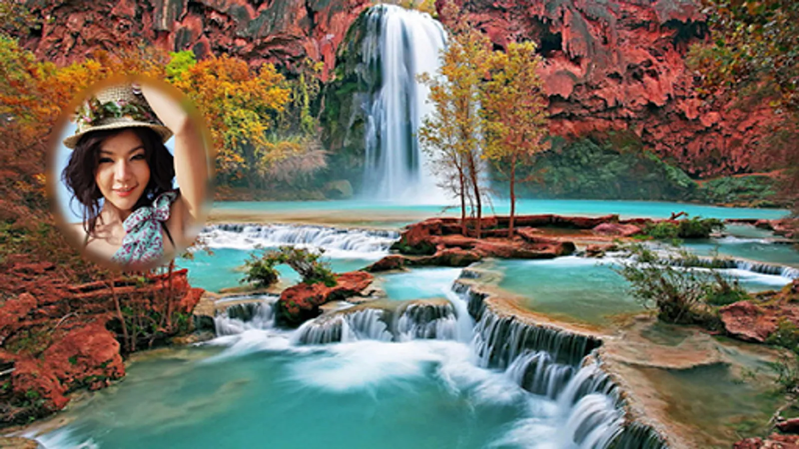 Get yourself on beautiful waterfall picture and mock up your photo like have been there.