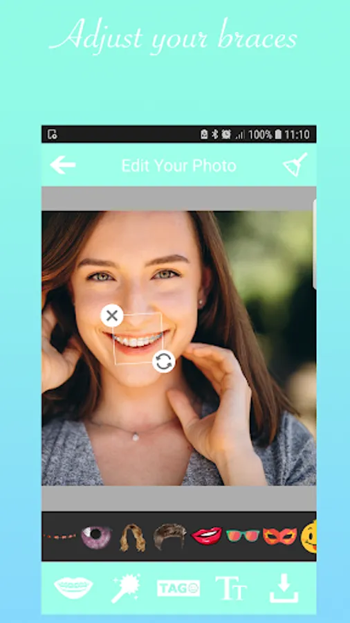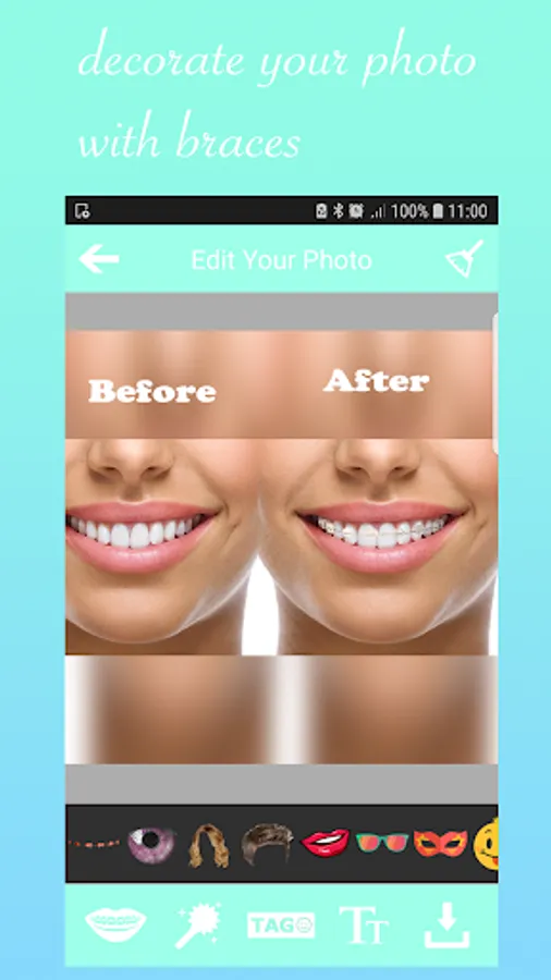 Braces selfie camera allows you to add brackets on photo and create realistic braces photo with braces booth on your teeth