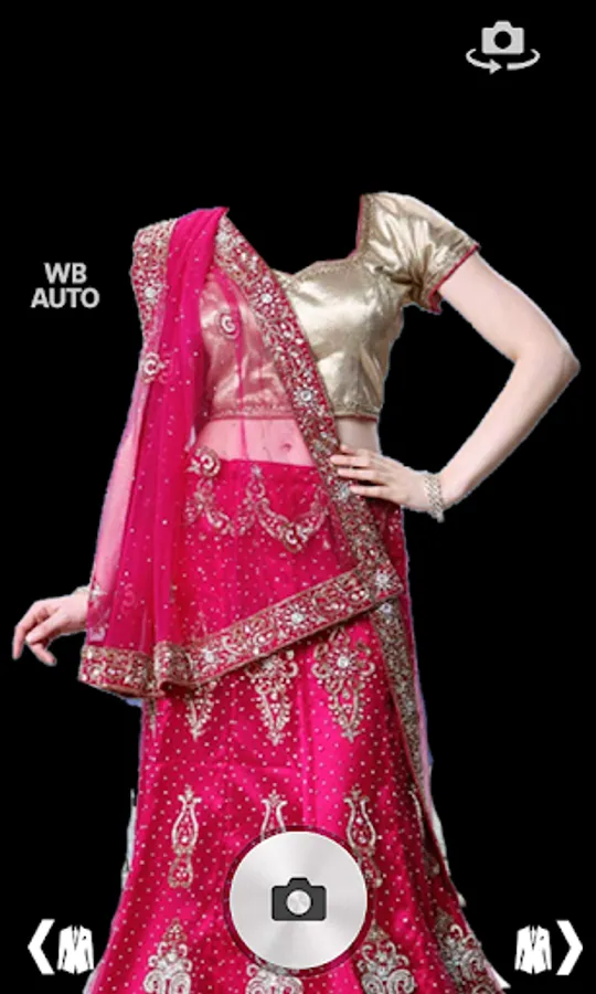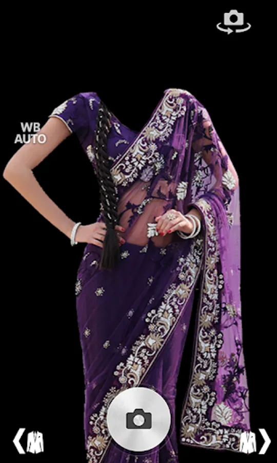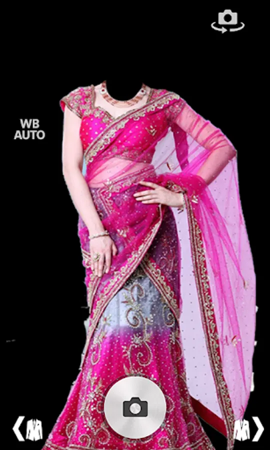 ★ Take camera photo and fit your face fit to the saree montage frames.