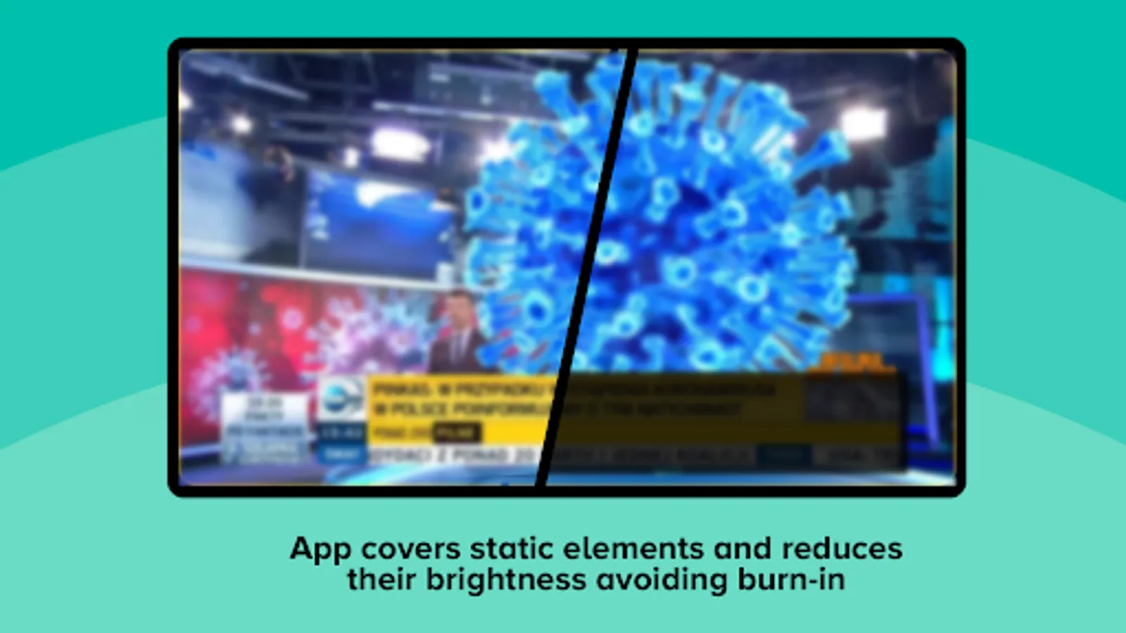 This application covers the static elements displayed on the screen and reduces their brightness, which may help avoiding burn-in issue.