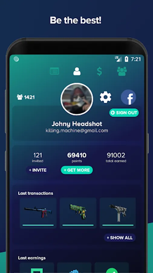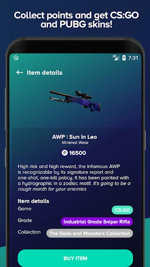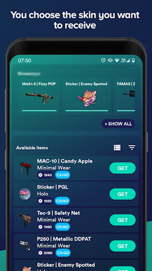 Reedem points for choosen CSGO skins!