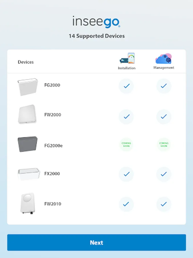 The Inseego Mobile App provides a simple, intuitive interface for installing and managing one or more Inseego 5G devices.