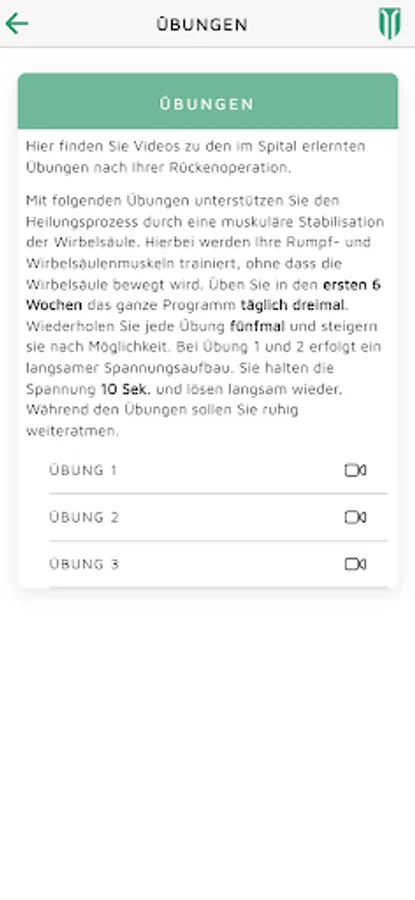 This app serves as a basis for information about the follow-up treatment of certain back operations at the Inselspital.