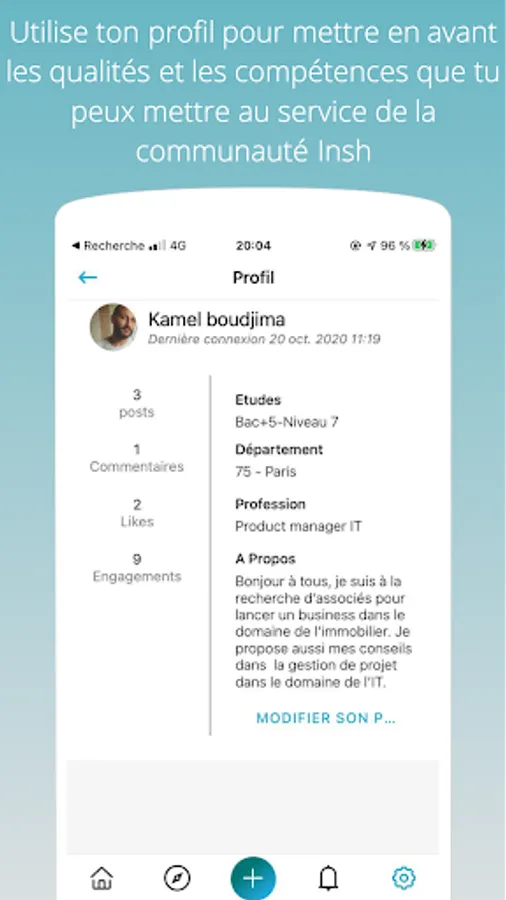 Utilisez votre profil pour mettre en avant les qualités et compétences que vous pouvez mettre au service de la communauté Insh.