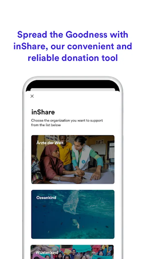 • inShare: Spread the good and donate to one of our cooperating charities and make our planet a better place together!