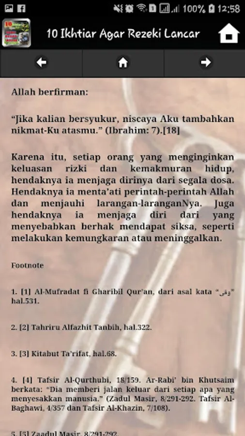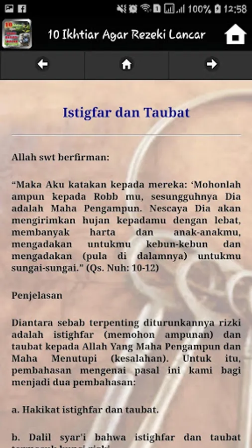 Fortune is a form of gift from God that sometimes is not only in the form of wealth. This practice is practiced by all Muslims in the world so that fortune in the form of assets and other things can flow to him. This application helps to understand how the procedure so that fortune becomes smooth and swift. this practice is done by the companions of the Prophet. among others :