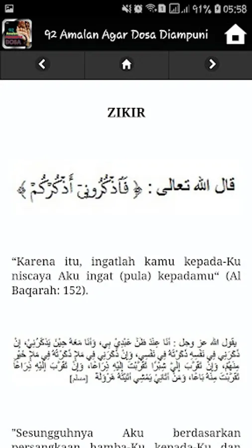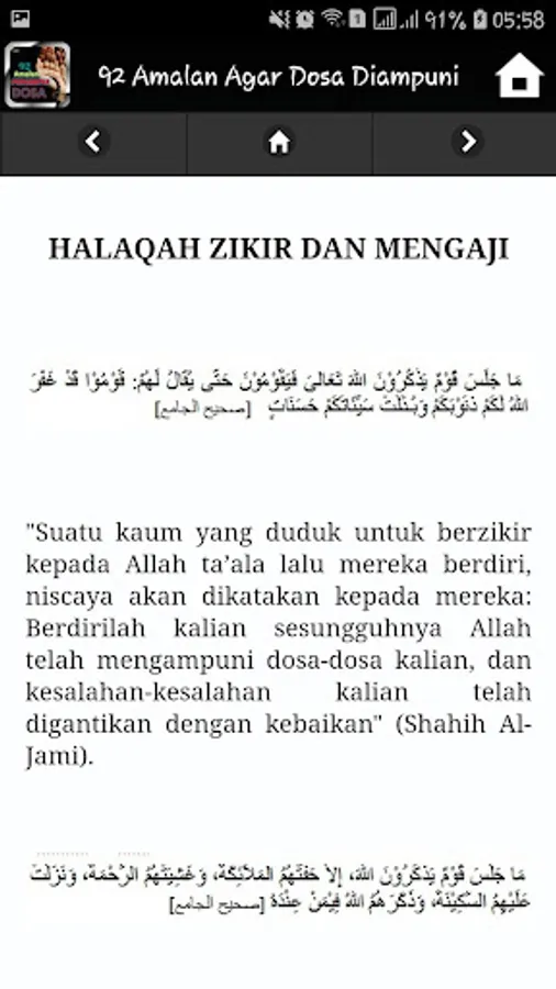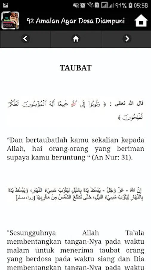 Sin is a part of human life. There is no adam child who has never committed sin. If in the past there has been a major sin that has been committed, immediately repent. Do good deeds and good deeds, so that the repentance of sin can be received by Allah SWT. The practice of practice that can be done so that sin can be forgiven, explained in detail in this application, also accompanied the postulate theorem of the Qur'an and hadith of the Prophet. The contents of this application include: