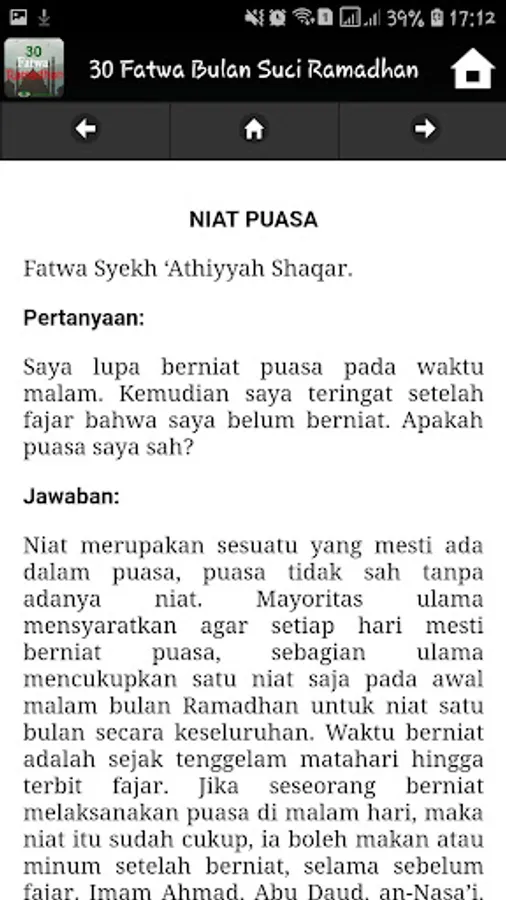 Application of 30 Ramadhan Fasting Fatwa Contains fatwa fatwa references which are widely held by Shafi'i school holders. Among others :