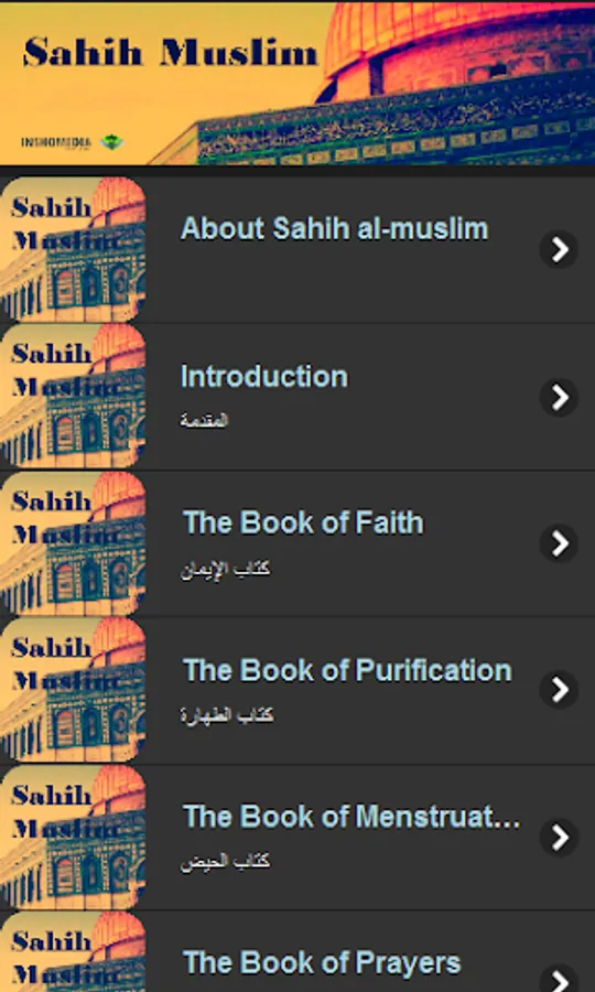 Saheeh Muslim, is divided into Several books where each book consists of Several chapters. The chapter titles indicate Imam Muslim jurisprudence of the hadiths contained Therein. Sahih Bukhari along with Sahih Muslim is Referred to as ash-Shahihain (Two Books Saheeh primary reference). In compiling the book Saheeh, Muslim Imam did not give a number. Later on added to the number in the Sahih Muslim hadith to facilitate reconciliation.