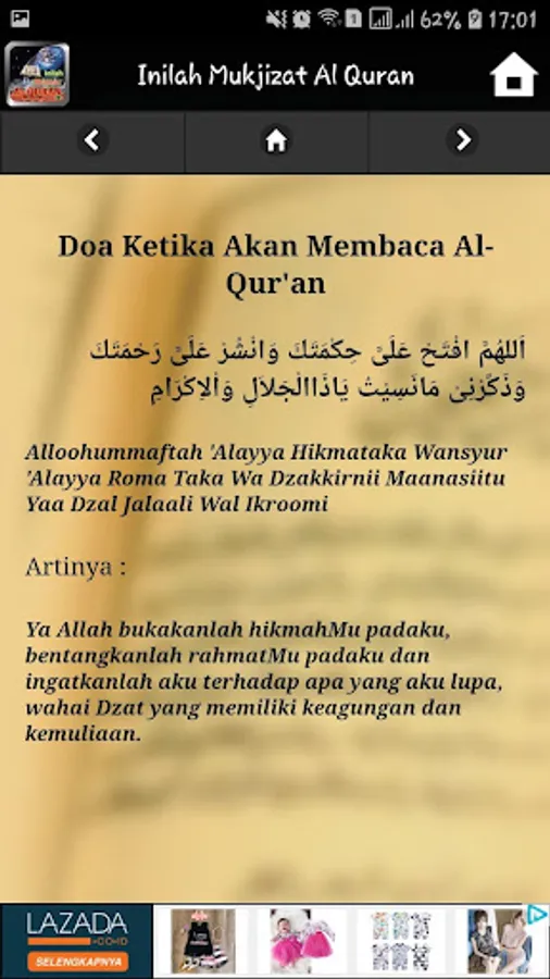 Al Quran is kalamullah whose truth is indisputable. Many scientists have proven the truth of the Koran. This Quranic Miracles application discusses how to read the Qur'an, starting from tadjwid and how to read it. Also there is the Koran and its translation 30 Juzz, and also discusses the Koran fadilah and also the truth of the Koran. The discussion in the Application of this Quranic Miracles Includes: