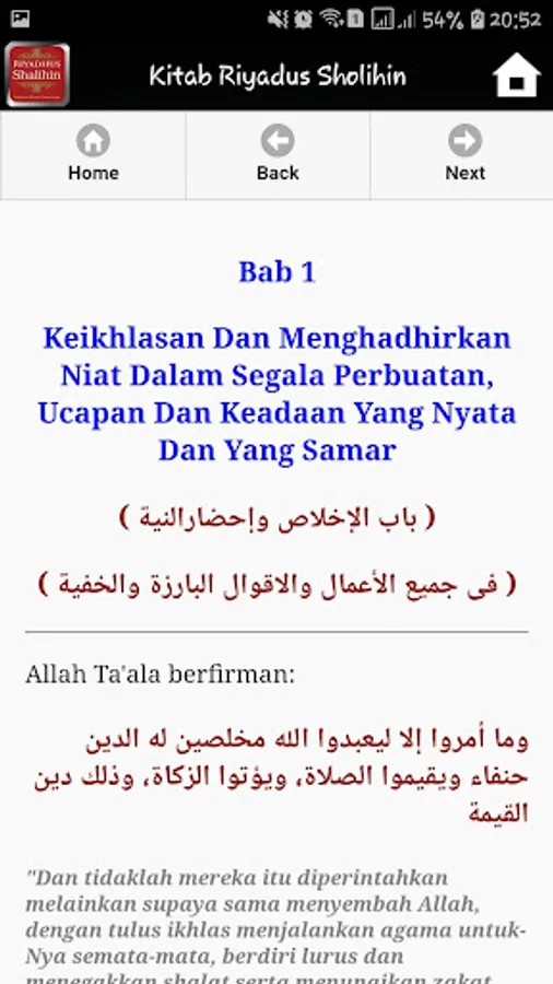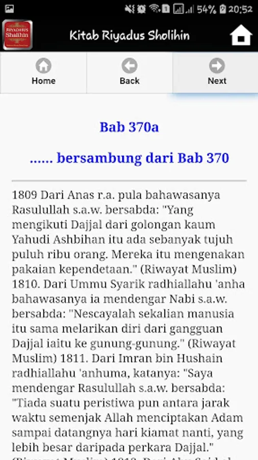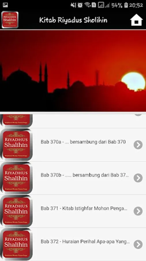 The contents of the application of the Book Riyadus Sholihin there are 372 Complete Chapters. Among others :