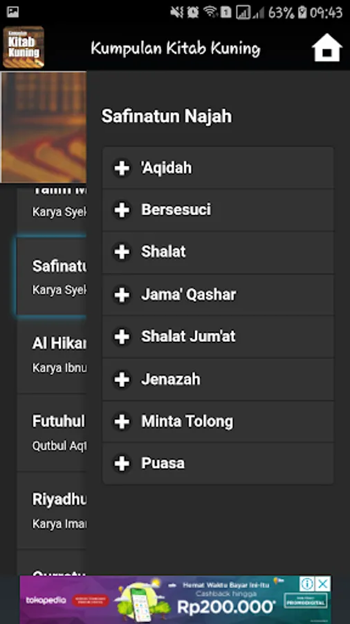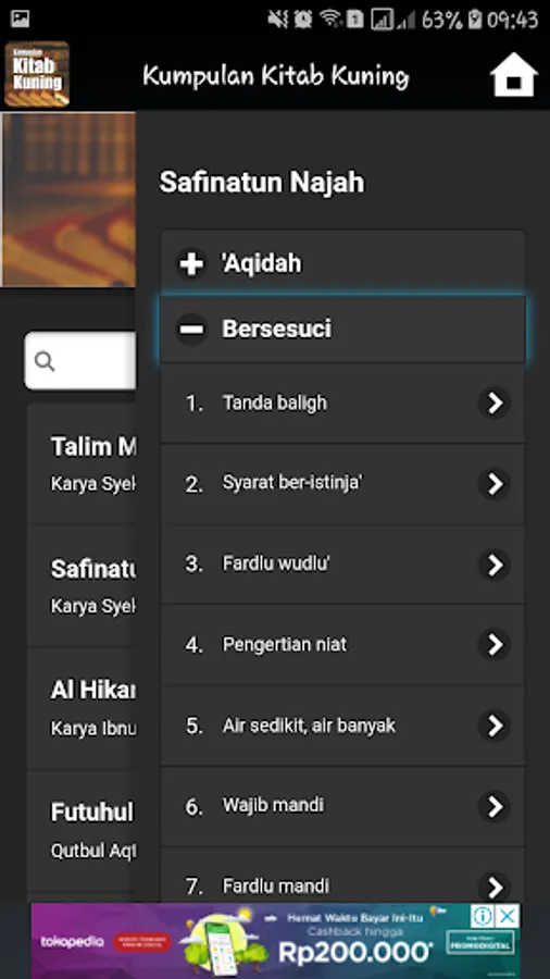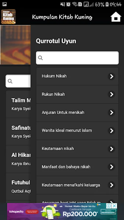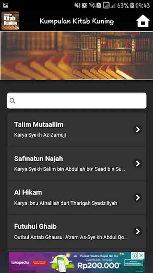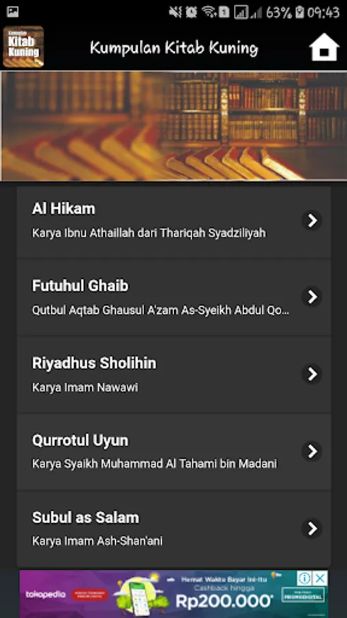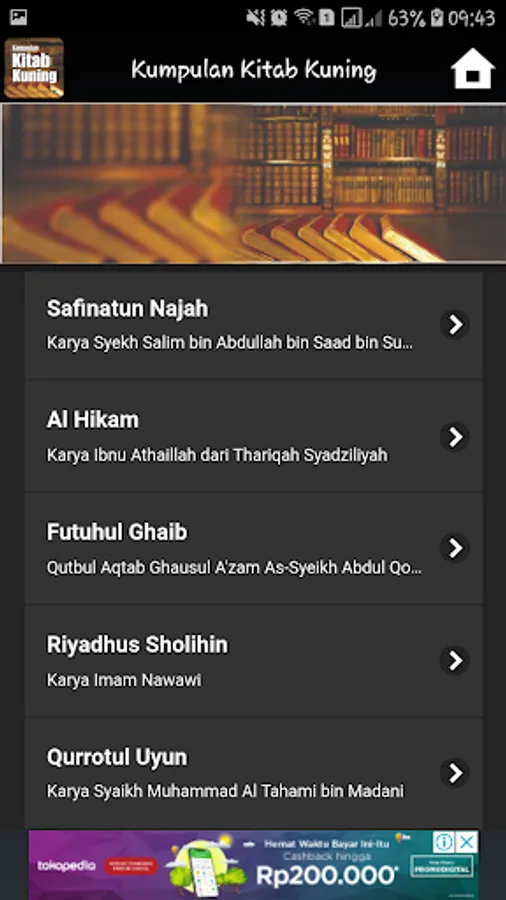The Yellow Book Also known as the bare book because it does not have a harakat (fathah, kasrah, dhammah, breadfruit), unlike the book of the Qur'an. Therefore, to be able to read the yellow book along with the literal meaning of the sentence per sentence in order to be understood comprehensively, it requires a relatively long learning time.