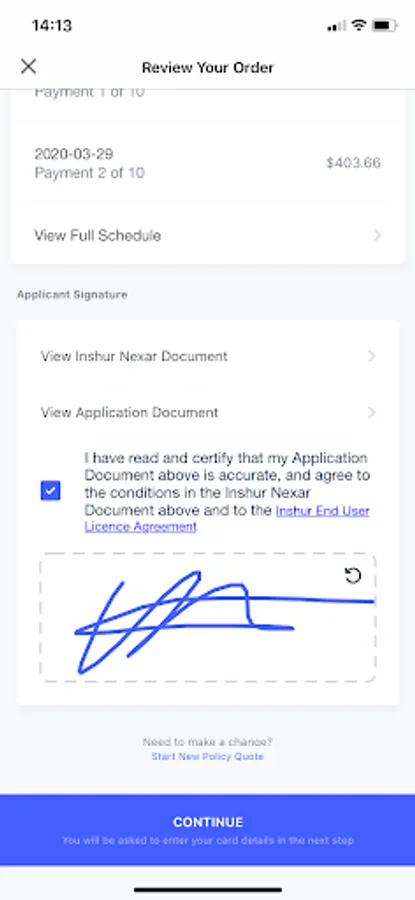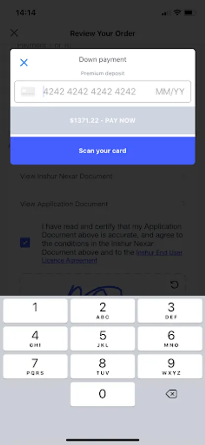 2. Say goodbye to paperwork - simply sign and pay for the policy via the app