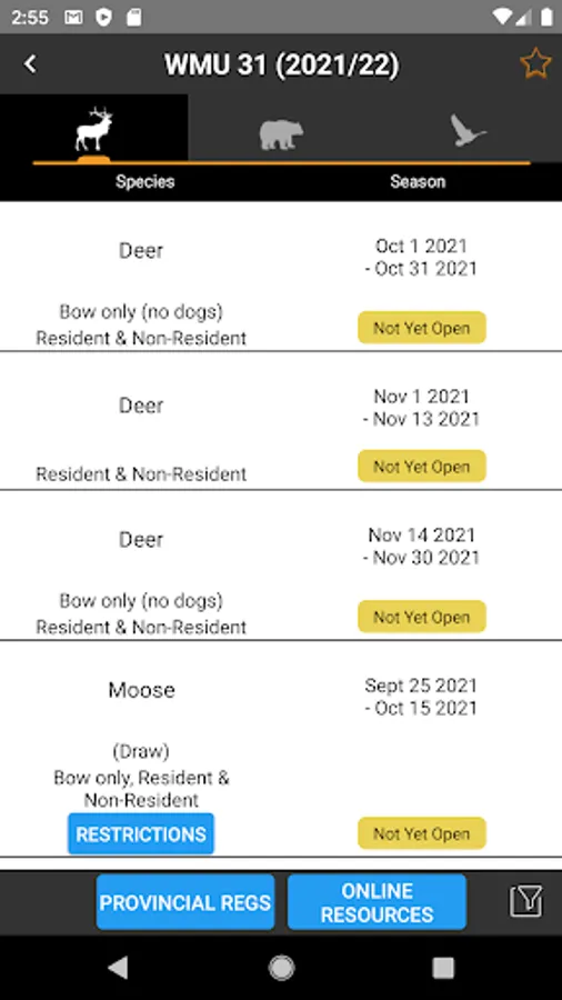 - Select a WMU to view its summary of big-game, predator and game bird seasons