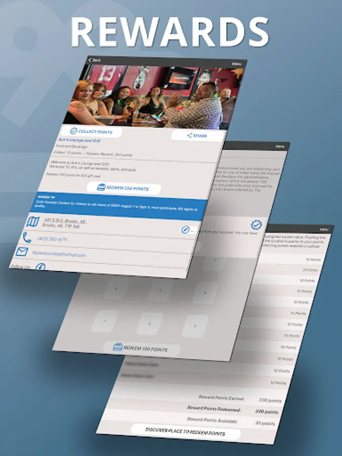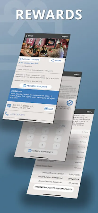 Once you collect enough points, those points can be redeemed for goods or services at Experience Brooks-Newell Rewards locations, which are indicated in the app. Select the place where you would like to redeem your reward. Hitting the “Redeem Rewards” button while physically at a Rewards location will bring up a key pad for the place owner to enter a code to deduct points from your point total in exchange for your reward. You must have an internet connection in order to redeem points.