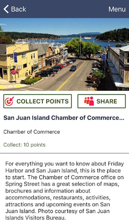 San Juan Islands Insider provides information on things to do, places to stay, and sites to see on the 4 primary San Juan Islands: Lopez, Orcas, San Juan, and Shaw. As you visit these locations, you are able to collect points, which can be redeemed at other locations for rewards (discounts, free items, etc.). The more places you visit, the more points you can earn and redeem for rewards. This app is managed by the Lopez, Orcas and San Juan Island Chambers of Commerce.