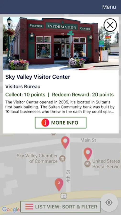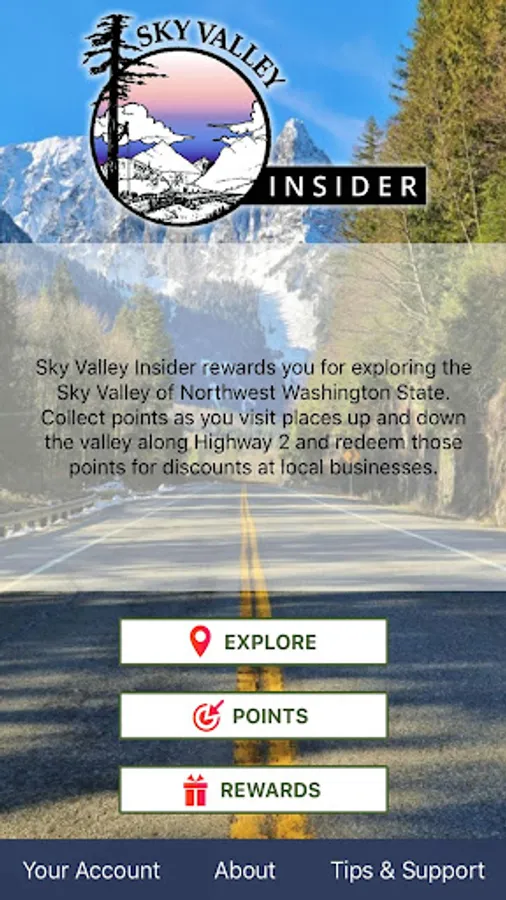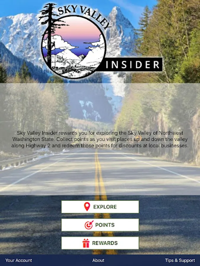 The Sky Valley Insider app rewards you for exploring the Sky Valley of Northwest, Washington State – about one hour north of Seattle. Collect points as you visit places up and down the valley along Highway 2 and redeem those points for discounts at local businesses.