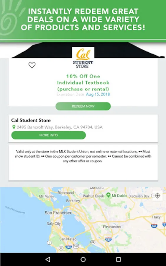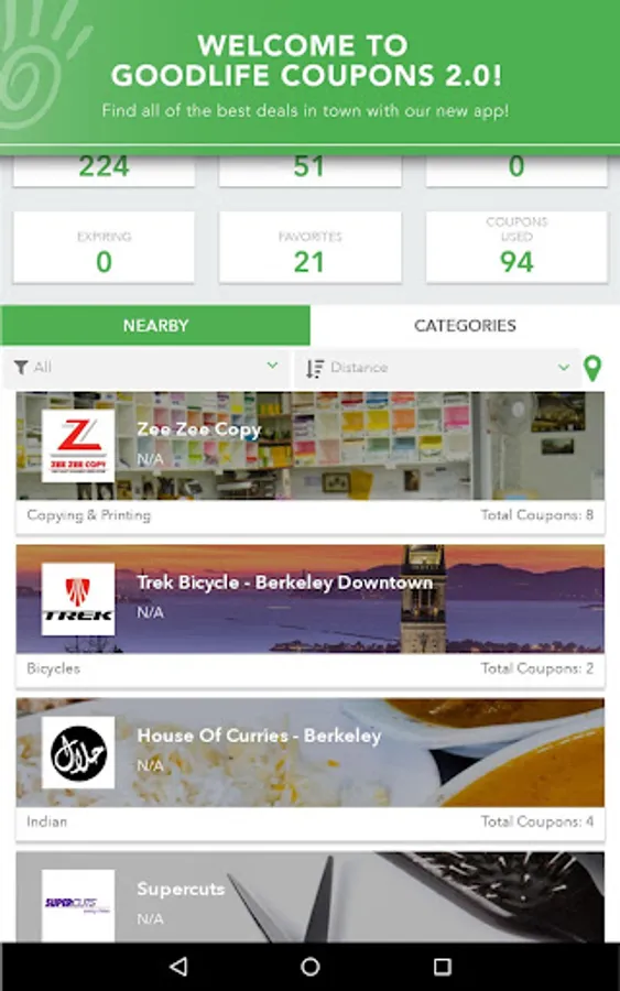 GoodLife Coupons is a free app catered to provide Berkeley students, East Bay locals, and visitors to the East Bay with 100’s of deals from local favorites. Our app is designed to use your current location to provide you with the nearest best bang for your buck coupons. Don’t look any further, get the nearest offers now by downloading us!