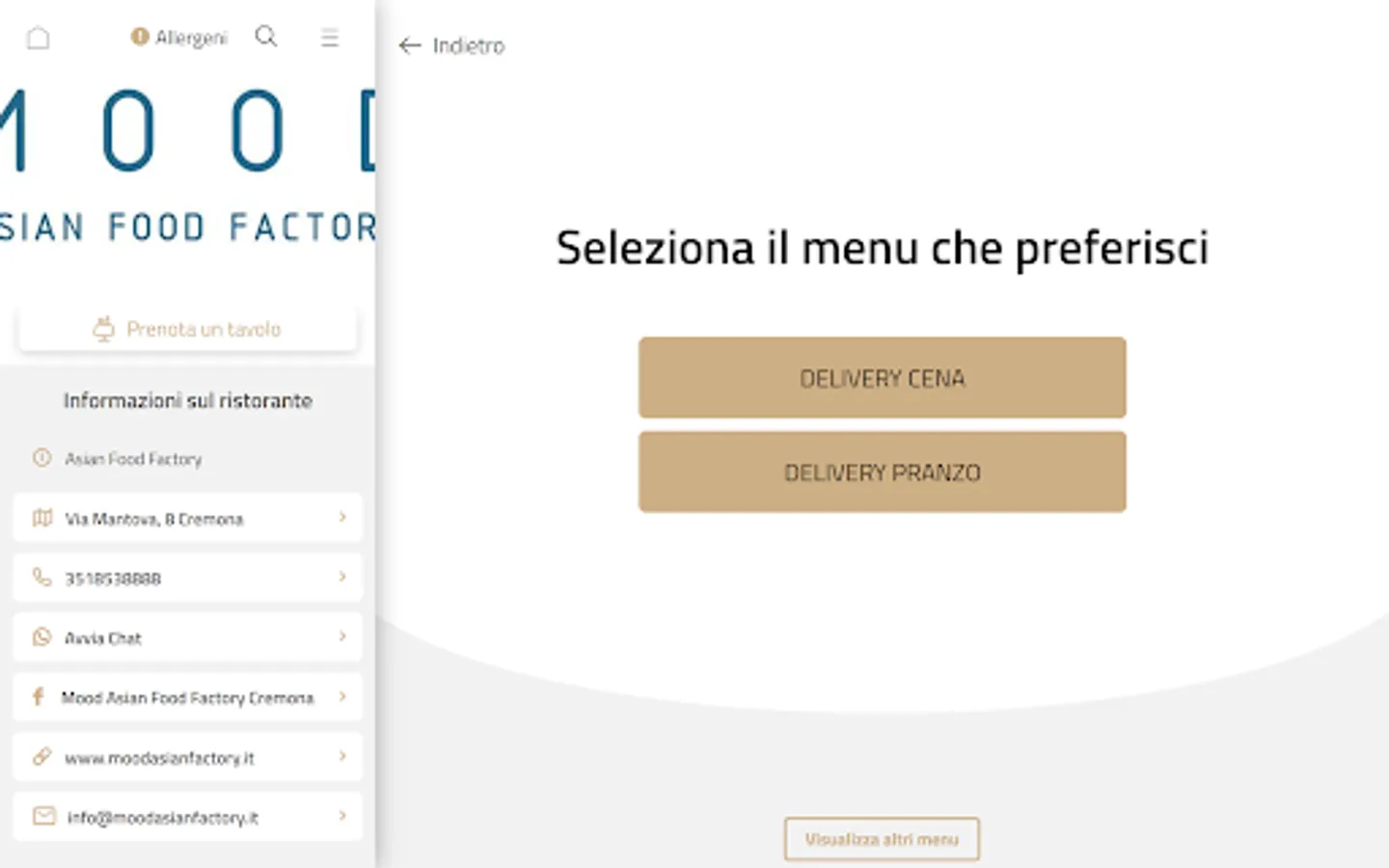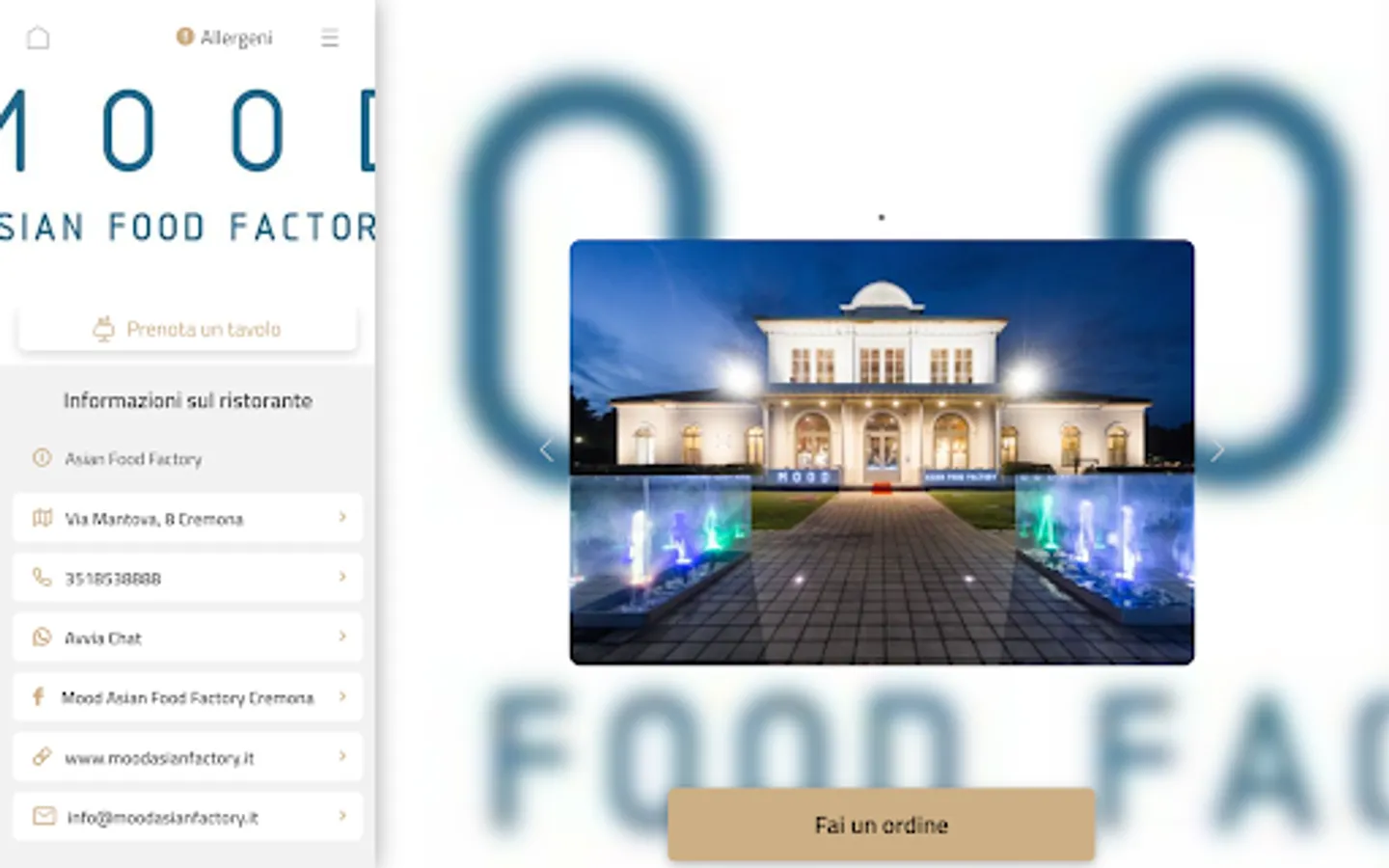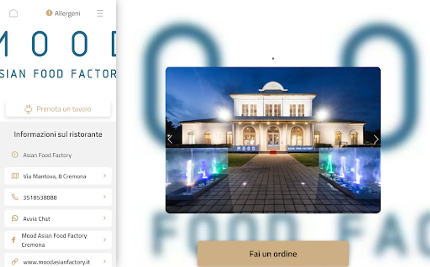 "MOOD Asian Food factory is a restaurant that was born in Cremona with the aim of presenting Asian cuisine in various shades. Located in the historic Liberty building in Via Mantova, the elegant setting and modernity of the menu will involve you for a relaxing and pleasant evening.