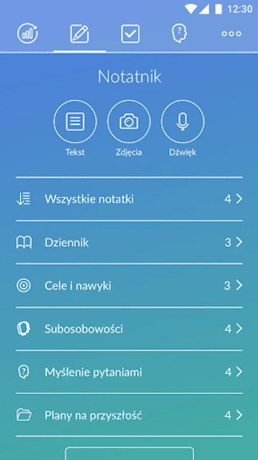 In application: sight has been designed as a tool to support the methods described in the book of Michael Herding "Insight. The road to mental maturity. " This is a book about how to be free from self-destructive habits of your mind, in order to achieve mental maturity - a state of deep inner balance, self-acceptance and samowsparcia.
