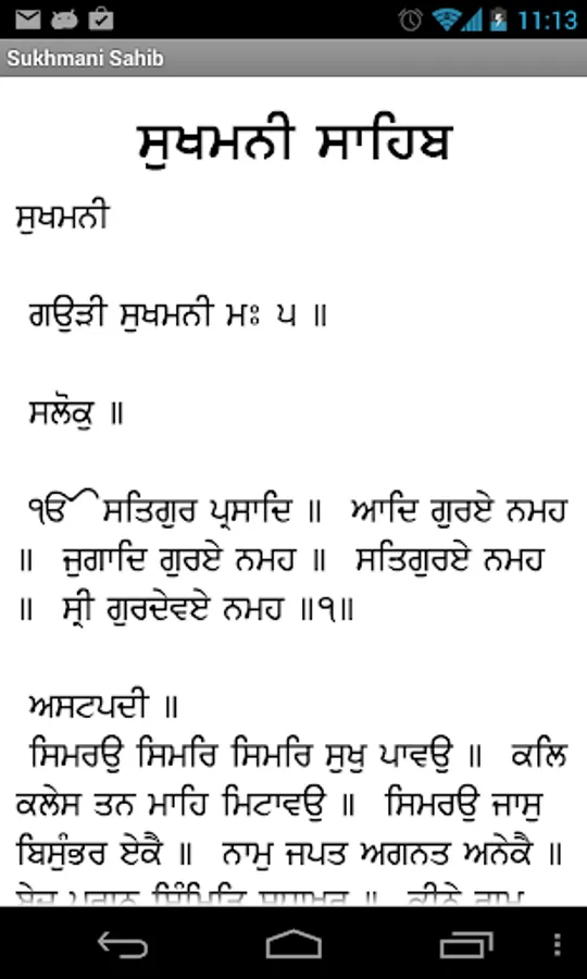 Sukhmani Sahib is the name given to the set of hymns divided into 24 sections which appear in the Sri Guru Granth Sahib, the Sikh Holy Scriptures on page 262. This Bani is believed to bring peace to one's mind and compoundly peace to the world.