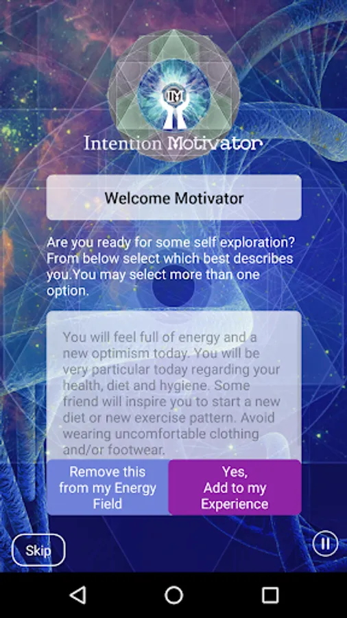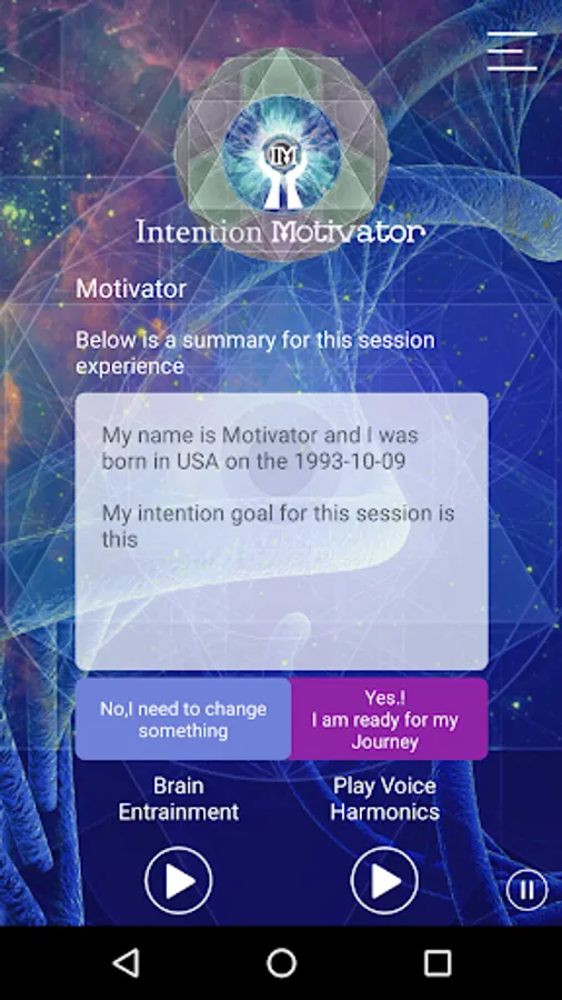INTENTION MOTIVATOR starts by creating an energetic link with you and your higher consciousness by using your voice and your picture to help tap into universal consciousness.