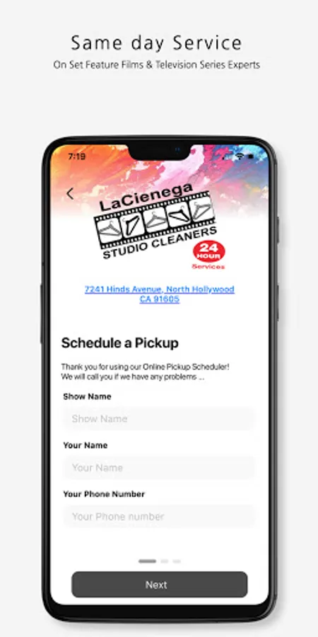 LA CIENEGA STUDIO CLEANERS offers full dry cleaning and laundry services using the latest equipment 24 hours a day. You can bring clothes in or schedule a pickup anytime during the day or night (within our hours of operation) and have it back within 4-6 hours.